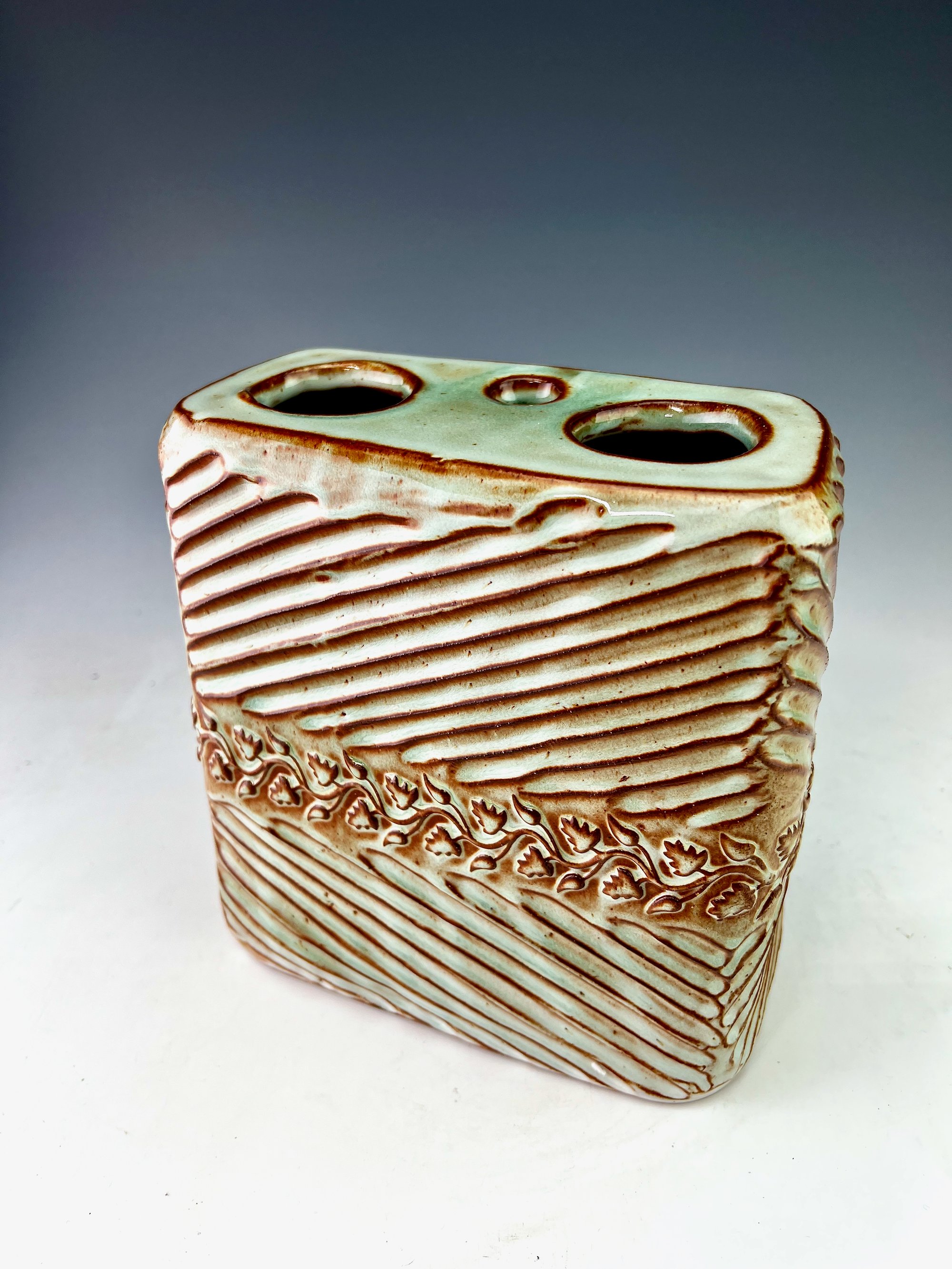 Tall Vase with texture and multiple layered glazes (BSG/CuAsh)