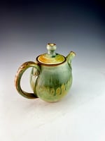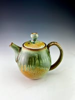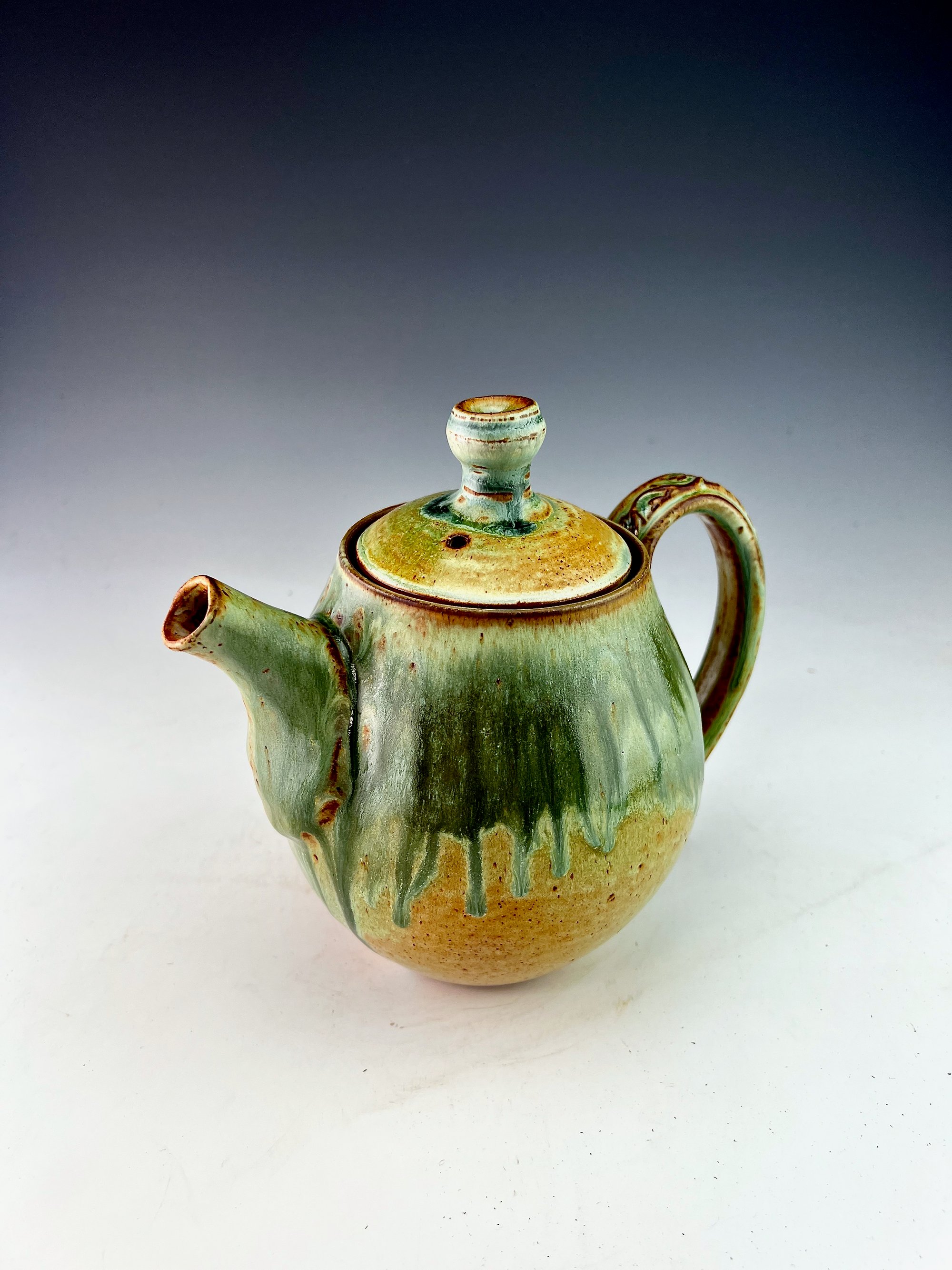 42 oz teapot with textured handle and multiple layered glazes